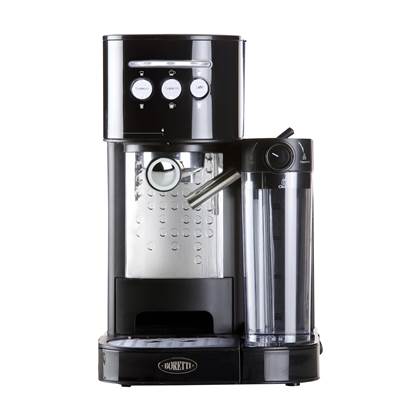 De versgemalen bonen gaan in de filterdrager van de Boretti espressomachine, waar met de juiste druk je espresso wordt gezet. Terwijl je dat doet wordt de melk voor je opgeschuimd om zo een heerlijke cappuccino te maken. Doe maar een bakkie! Bestel Boretti B400 Espressomachine online bij fonQ. Alle Boretti Koffie pistonmachines uit voorraad leverbaar. Voor 23:00 besteld, morgen in huis
